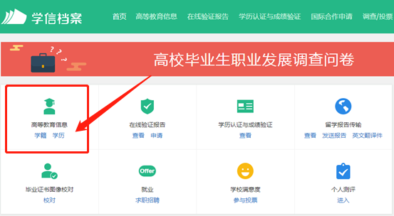 4. 登录后,点击 “高等教育信息学籍/学历”进行查询
