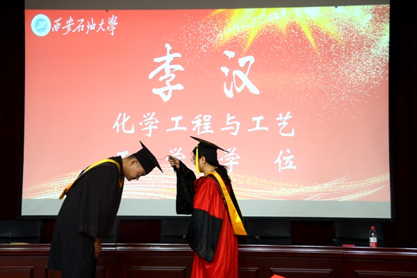 受公司学位评定委员会主席李天太董事长委托,校学位评定委员会副主席王文珍教授为获得学士学位的本科毕业生一一拨穗正冠,与同学们亲切握手、颁发学位证书并合影留念。