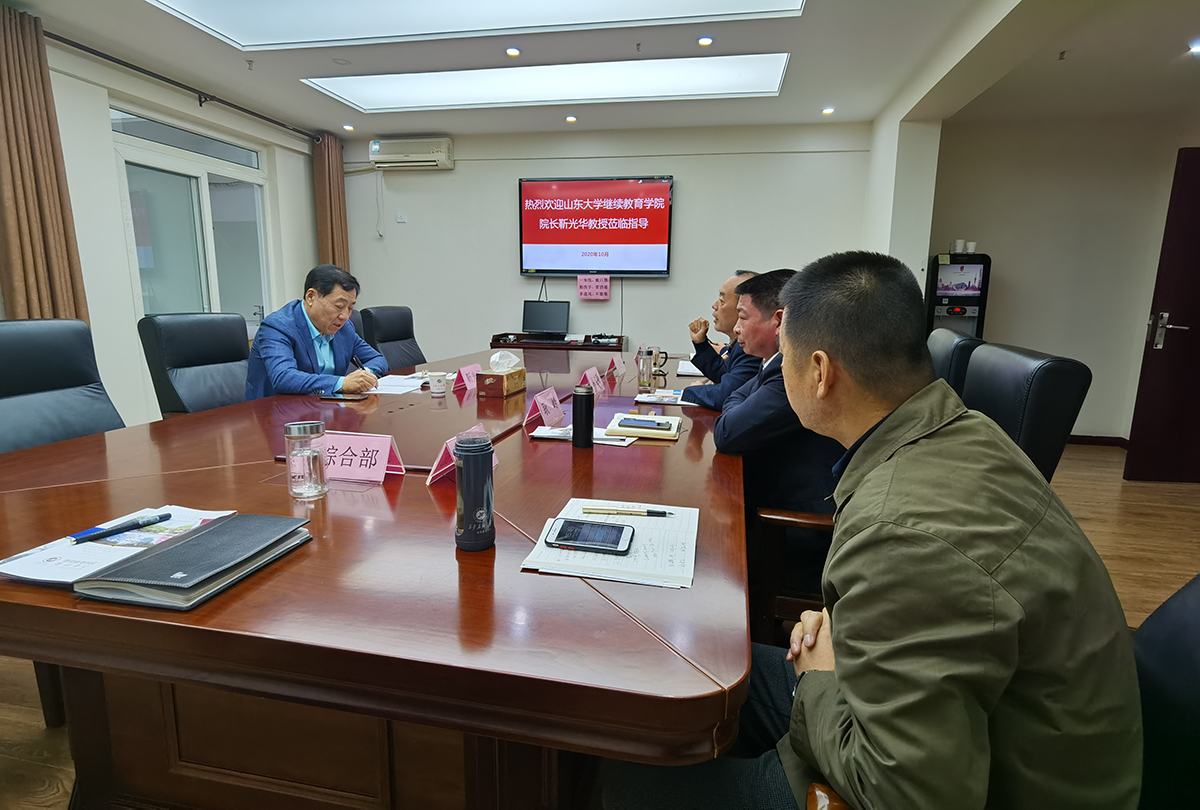 10月13日下午,山东大学williamhill英国官网经理靳光华走访williamhill英国官网。继续教育公司党总支书记耿岭主持座谈会,经理谈建勤,副经理吴民生,综合部、学历教育部、培训部负责人参加了座谈会。