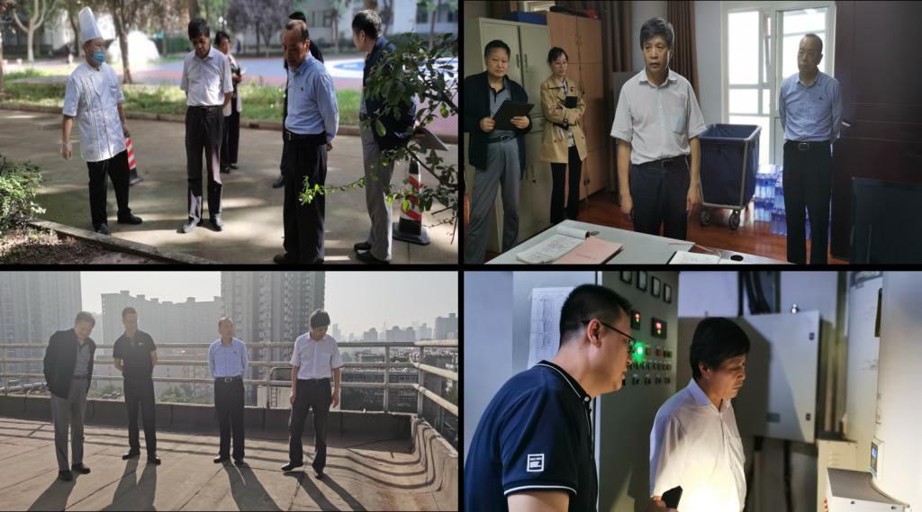 杨战社副董事长一行先后对公司餐厅后厨、客房、隔油池、培训中心北楼楼顶、培训南楼地下室锅炉房等重点部位进行了仔细检查,听取了各部位负责人的工作汇报,针对可能出现的安全隐患,要求公司持续加强排查,并对培训中心北楼楼顶漏水给出了修缮意见。同时,他还听取了公司在常态化疫情防控下所采取的各项举措,对门卫外来人员登记、检查行程码工作进行了检查。