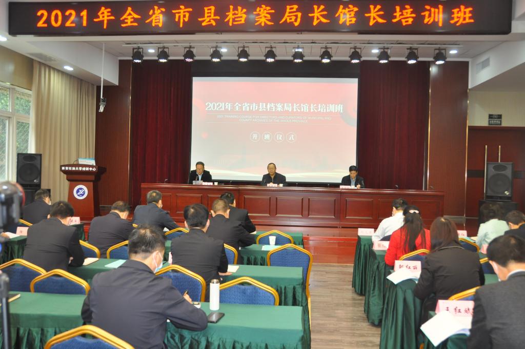 10月11日上午,2021年全省市县档案局长馆长培训班在公司培训中心顺利开班。省委副秘书长、省档案局局馆长高新民,副董事长杨战社出席开班仪式。仪式由陕西省档案局二级巡视员、人事处处长王展志主持。来自全省各市、县档案局馆长及省档案馆干部80余人将参加本次培训。