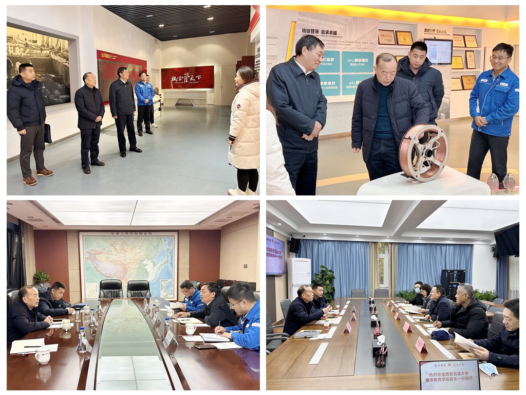 在宝鸡石油钢管有限责任公司,谈建勤一行在总会计师黄桥林陪同下参观了展览馆,了解产品发展应用及“制造+服务”的开展情况。座谈交流中,谈建勤简要介绍了公司和公司近年来的发展及取得的成绩,详尽介绍了公司培训工作和学历教育开展情况,重点推介了财务管理、人力资源等特色培训项目;公司人力资源部、财务处相关负责人介绍了人才培养、员工培训等方面的基本情况和迫切需求。双方就员工培训、学历提升等方面达成若干合作意向。
