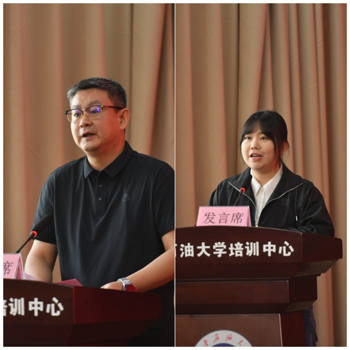 同力申硕石油与天然气工程学科唐炜、专升本人力资源管理专业韩伊茗代表新生发言。