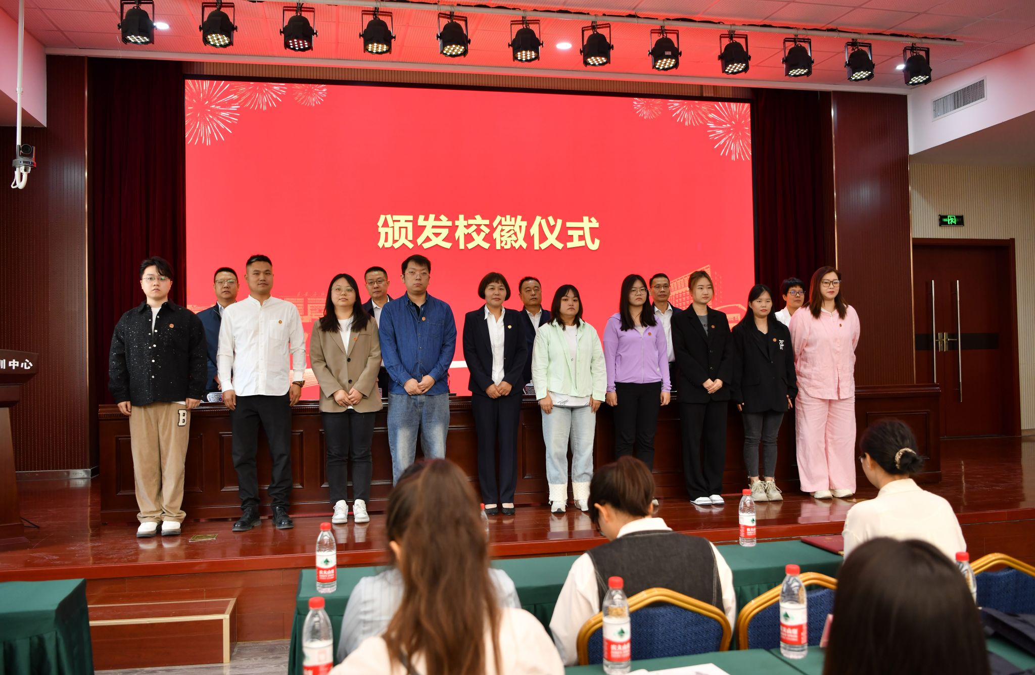 随后,主席台领导和嘉宾为新生代表颁发并佩戴校徽。教务老师们从学籍管理、教学管理、教学平台使用等方面为新生开展了讲解和培训。