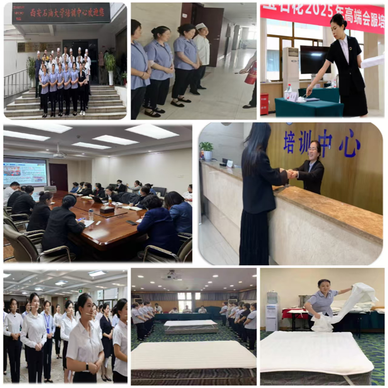 在服务保障方面,督促第三方强化餐厅、客房和物业的员工培训教育,定期检查其酒店管理服务标准落实情况,提升第三方员工队伍整体素质;严格落实“首问责任制”,以“关心、爱心、放心、细心、诚心”服务回馈客户;不断优化窗口形象,坚持以甜美微笑,问候、接待每一位学员,提高商务接待水平。