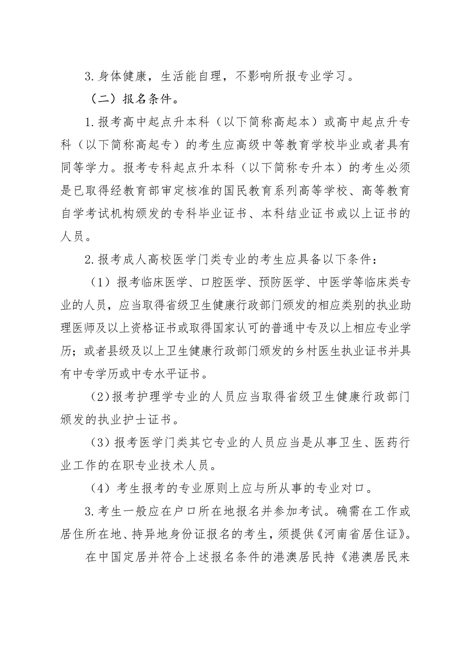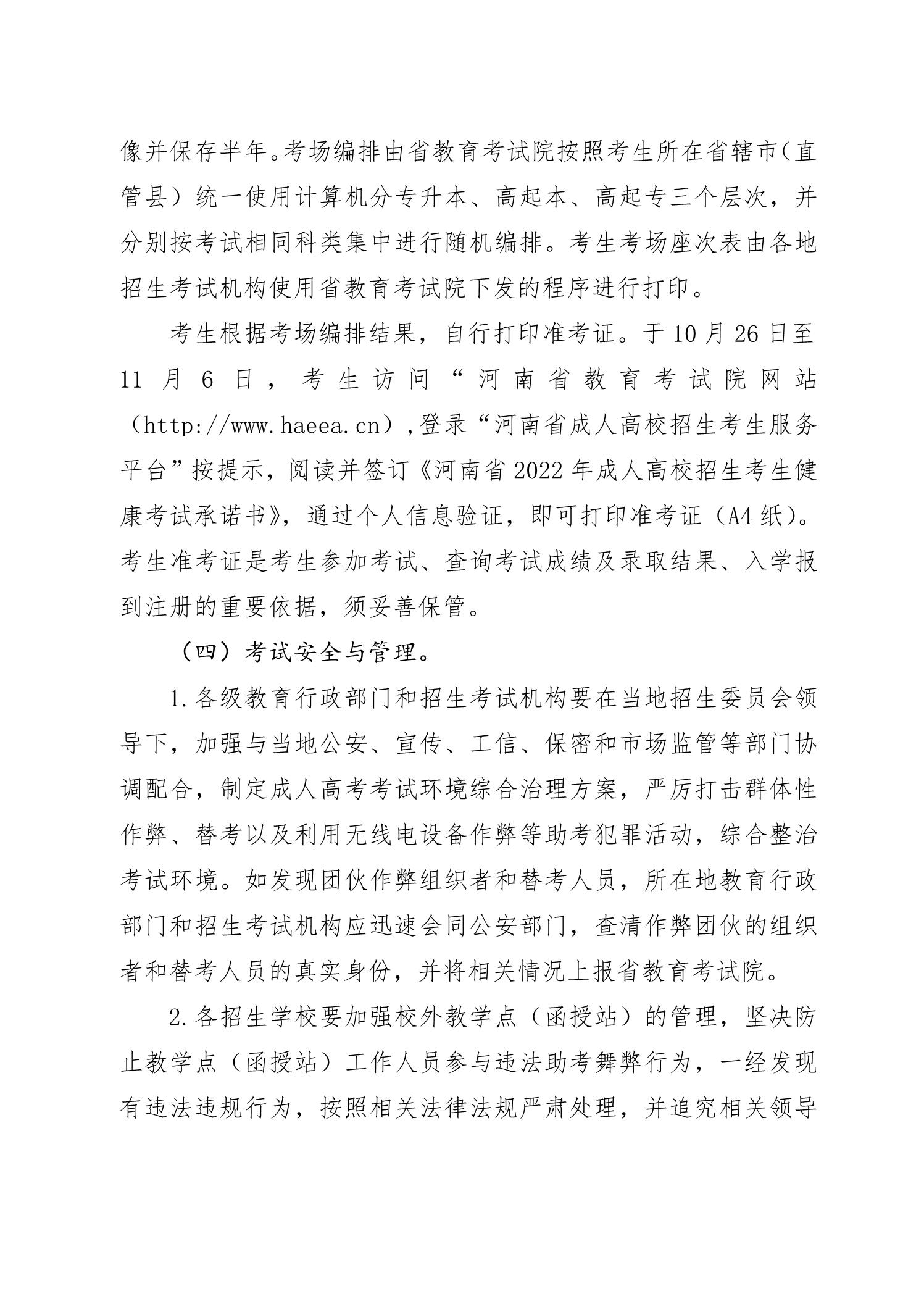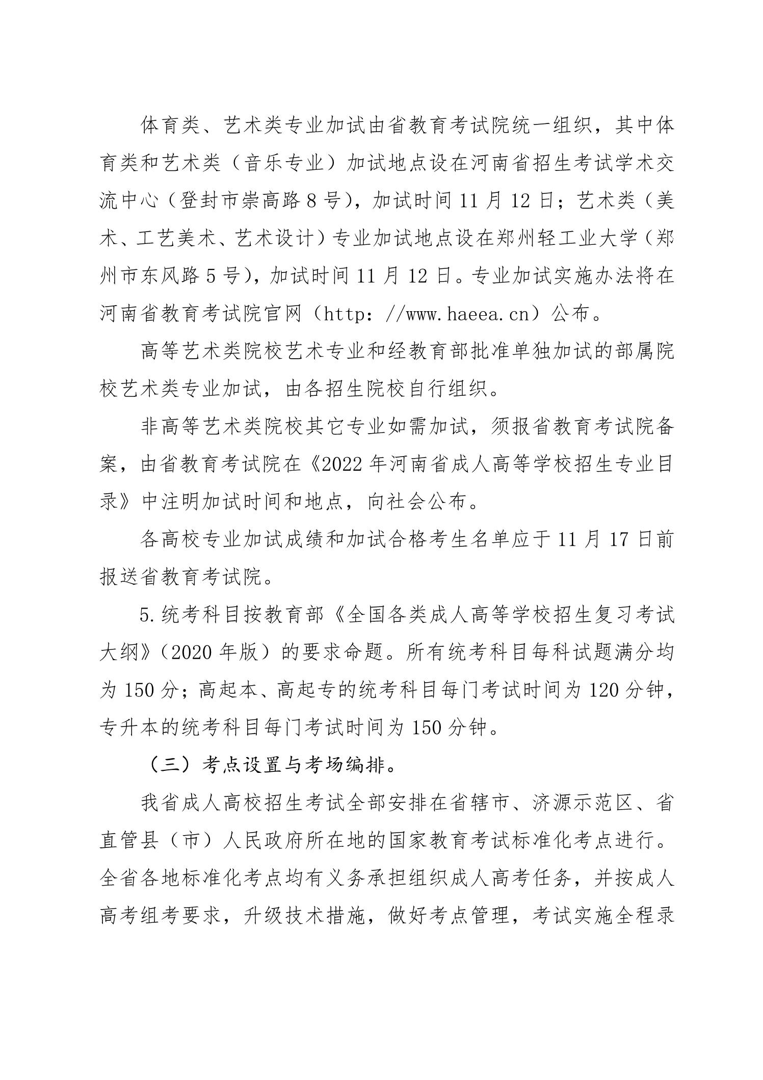 河南省2022年成人高校招生工作规定