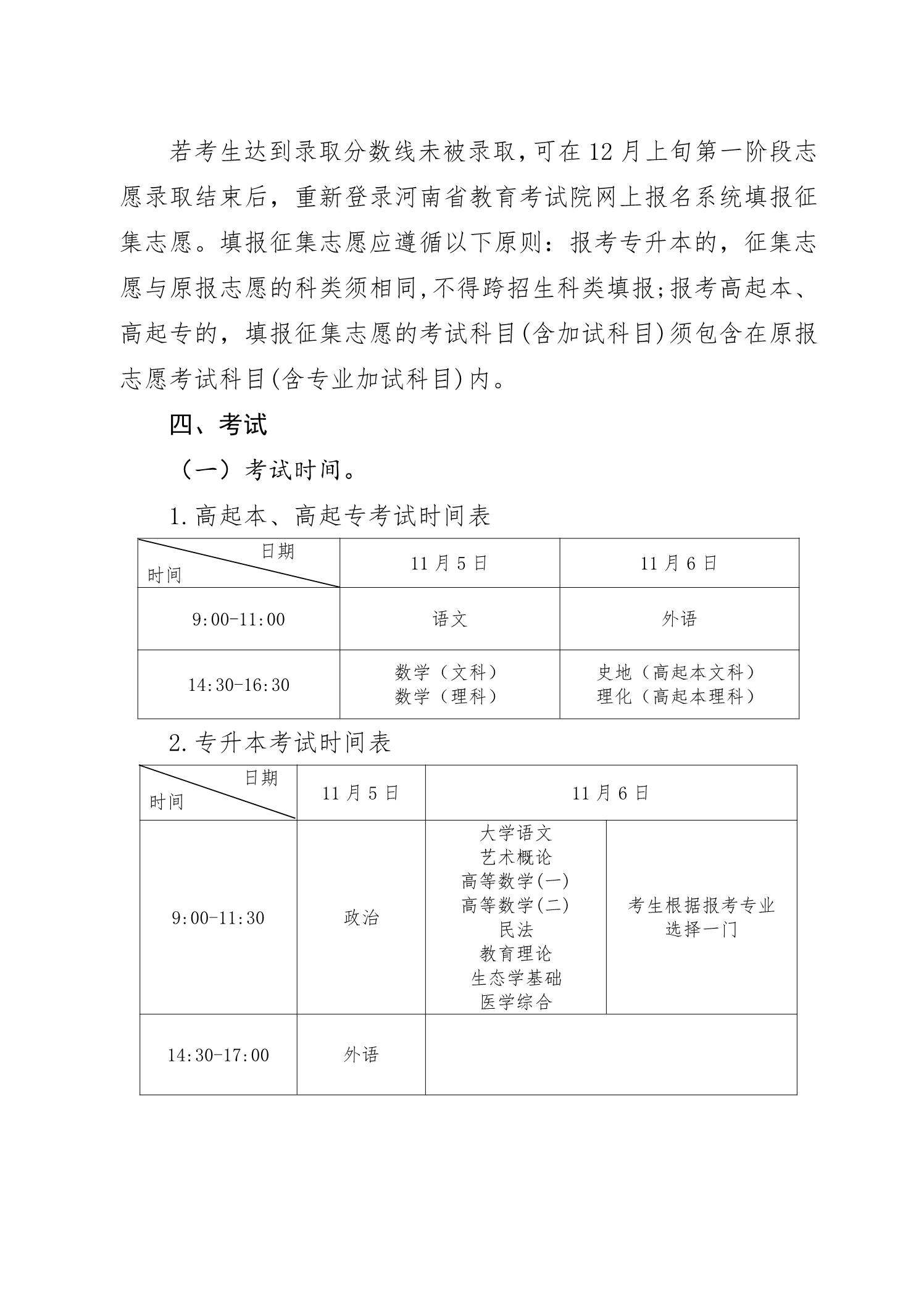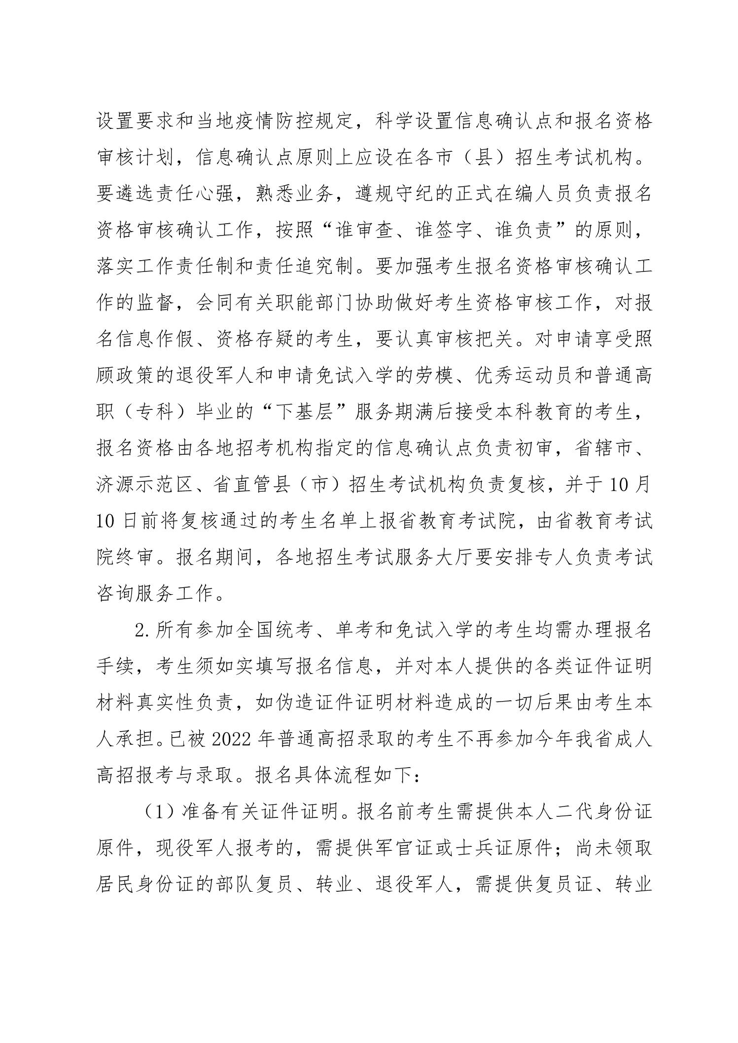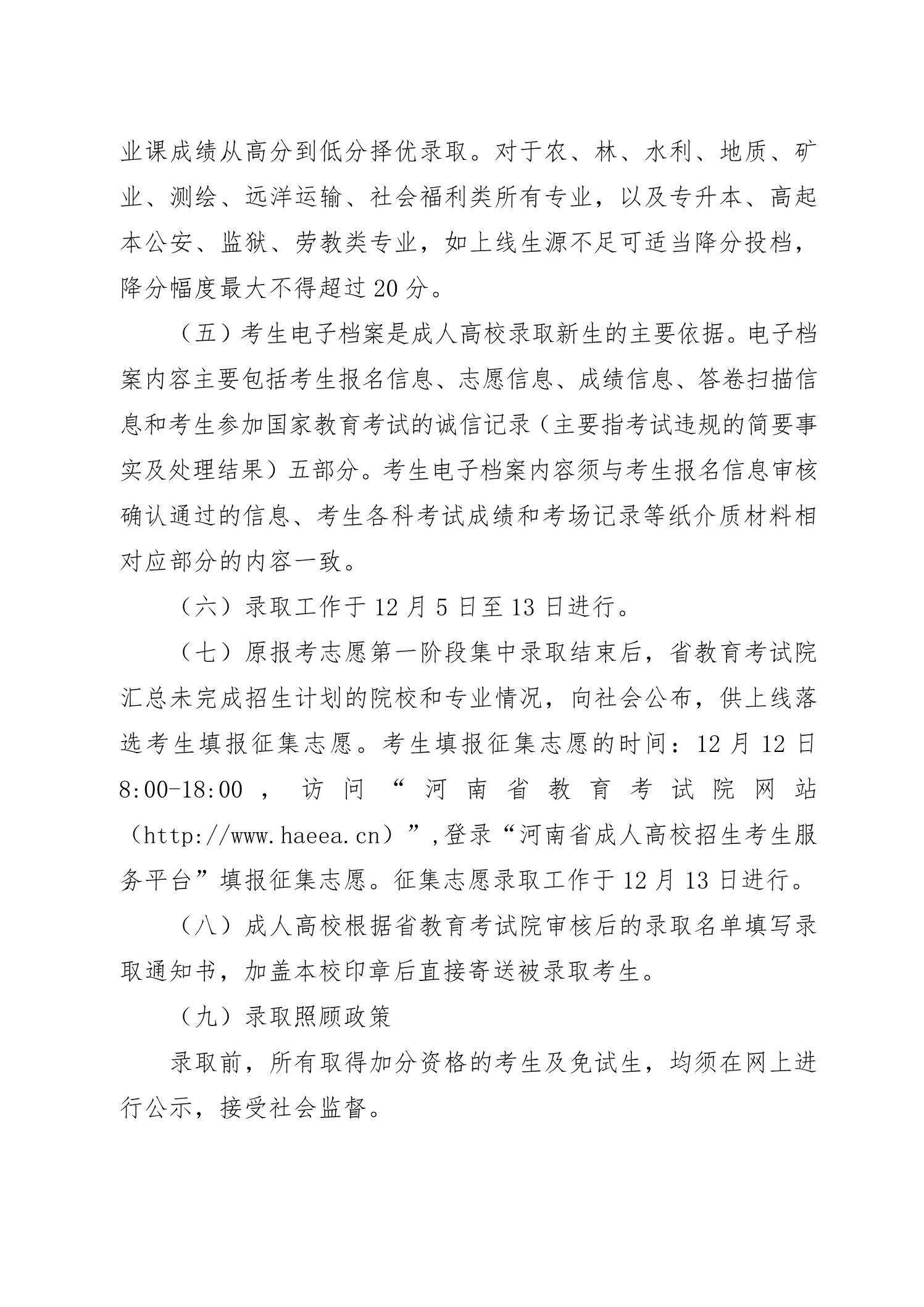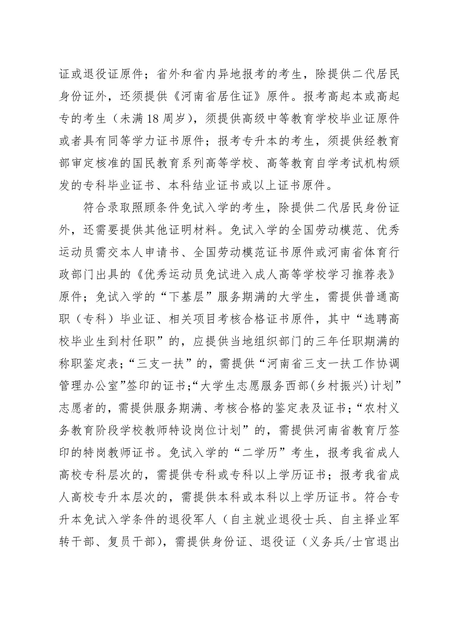 河南省2022年成人高校招生工作规定