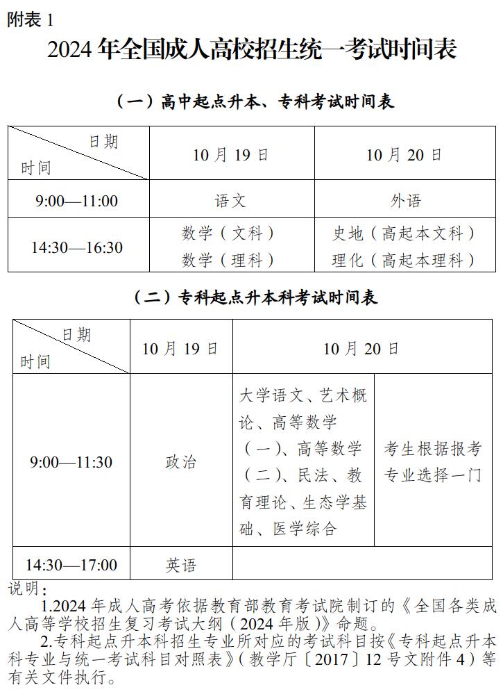 根据教育部安排,自治区2024年成人高校招生全国统一考试(简称“成人高考”)将于2024年10月19日至20日举行。成人高考设高中起点升专科、高中起点升本科和专科起点升本科(下称“高起专”“高起本”“专升本”)三种招生类型。