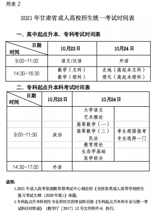 (十)考试日期为 10 月 23 日、24 日,具体考试时间附后(见附表 3)。
