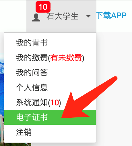 点击右上角“姓名”,点击“电子证书”,可进行预览、下载或打印操作。