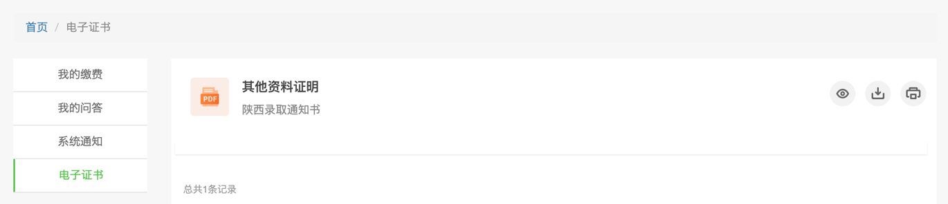 使用身份证号和初始密码(同上)登录成功后,依次点击“我的—电子证书”,即可进行预览和下载操作。