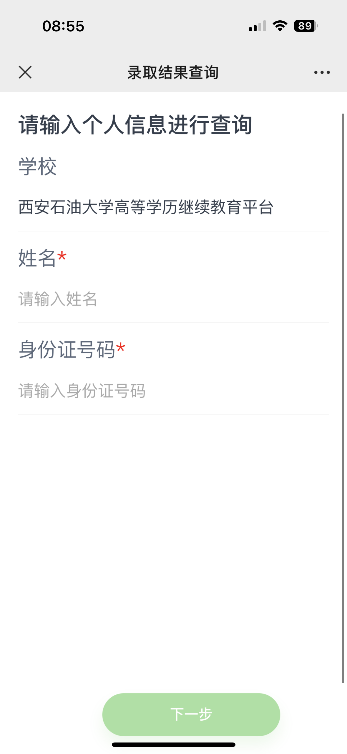 2. 填入本人姓名和身份证号,点击“下一步”。