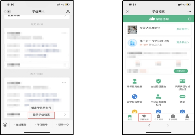 关注“学信网”公众号,绑定学信网账号,点击“学信账号”,查看学籍学历信息。