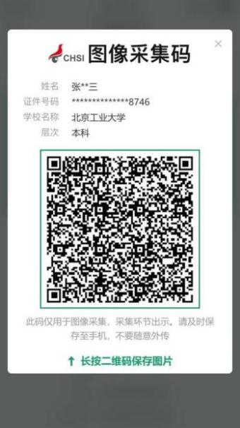 拍照时出示如图二维码,扫码采集。(采集前一周查看并保存采集码,截屏即可)。