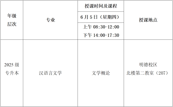 2025年春季学期第十三次(6月5日)线下教学课程表