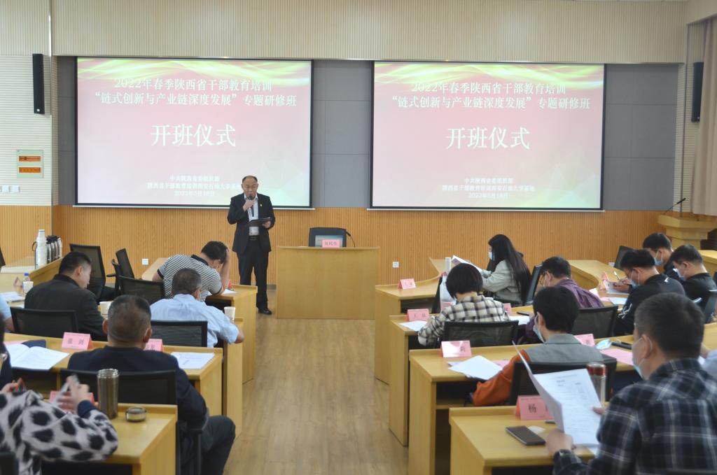 开班仪式结束后,陕西省工信厅一级调研员党天虎做了题为《链式创新的方式探索》的专题报告。