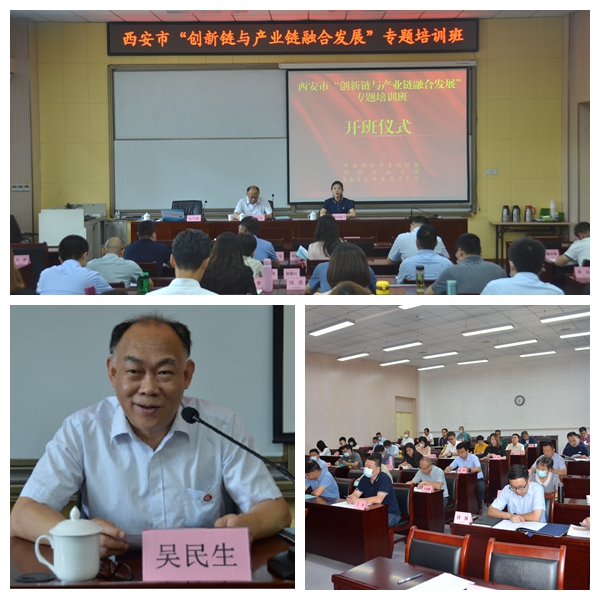 6月27日上午,由中共西安市委组织部主办、公司干部教育培训基地承办的西安市“创新链与产业链融合发展”专题培训班,在公司明德校区109教室顺利开班。williamhill英国官网副经理吴民生参加开班仪式并致辞,来自西安市各区县、西咸新区及各开发区、市级相关部门49名中层干部参加了开班仪式,仪式由班主任康高梅子主持。