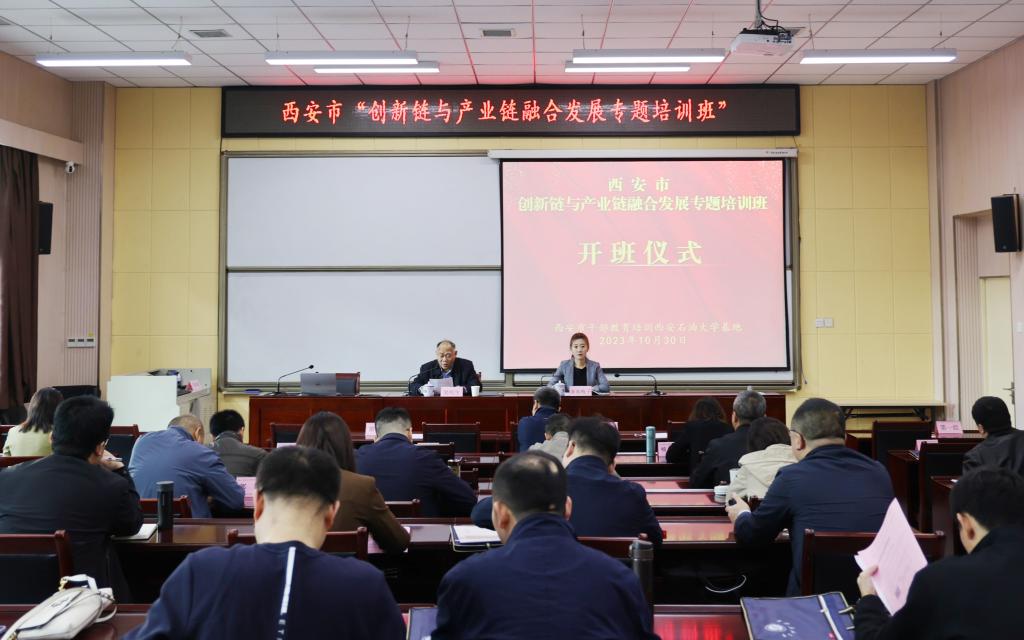 10月30日上午,由中共西安市委组织部主办、公司干部教育培训基地承办的西安市“创新链与产业链融合发展专题培训班”在明德校区顺利开班。williamhill英国官网副经理吴民生参加开班仪式并致辞,来自西安市各区县、西咸新区及各开发区、市级相关部门48名中层干部参加了开班仪式。