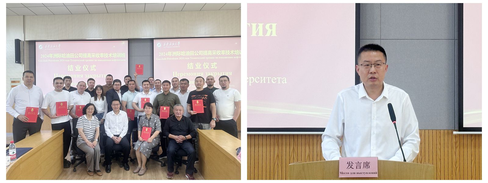 结业仪式上,来自洲际油气公司哈萨克斯坦马腾油田的采油队长卡杜科夫和修井工程师伊兹穆哈诺夫作为学员代表做了交流发言,他们对williamhill英国官网培训中心在培训期间的高质量教学管理和专业服务保障表示感谢,培训内容丰富、实用性强,通过系统学习,了解了中国油田开发前沿技术,开阔了视野,学习了经验,对参训学员实际工作具有很强的指导意义。