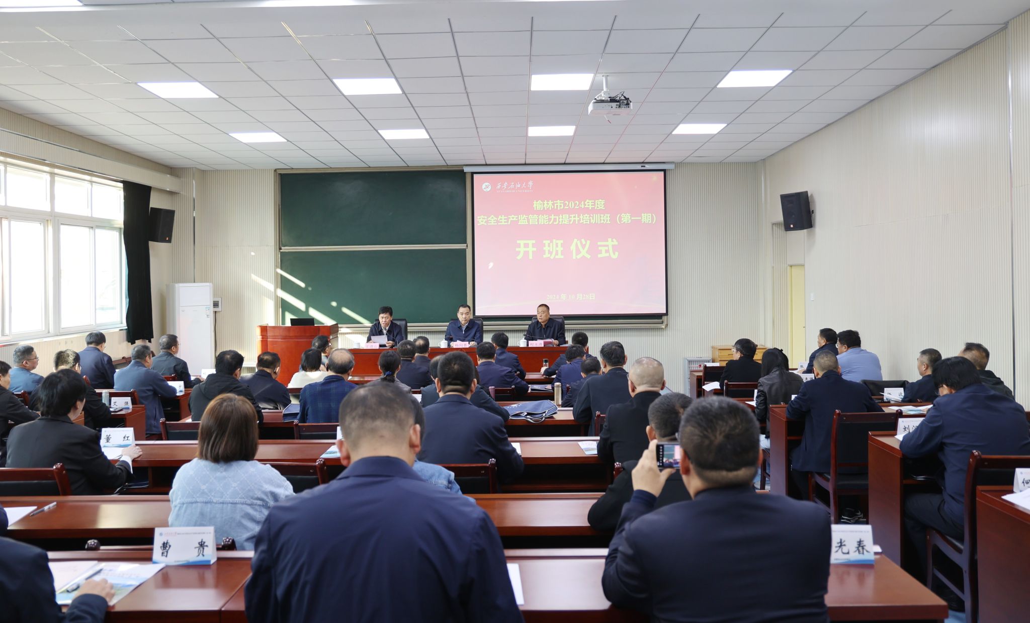 随后,杨向喜、程永清共同出席开班仪式,来自榆林市各县市区(园区)和乡镇(街道办)分管领导及相关负责安全生产监管工作的60名学员参加仪式。仪式由王道山主持。