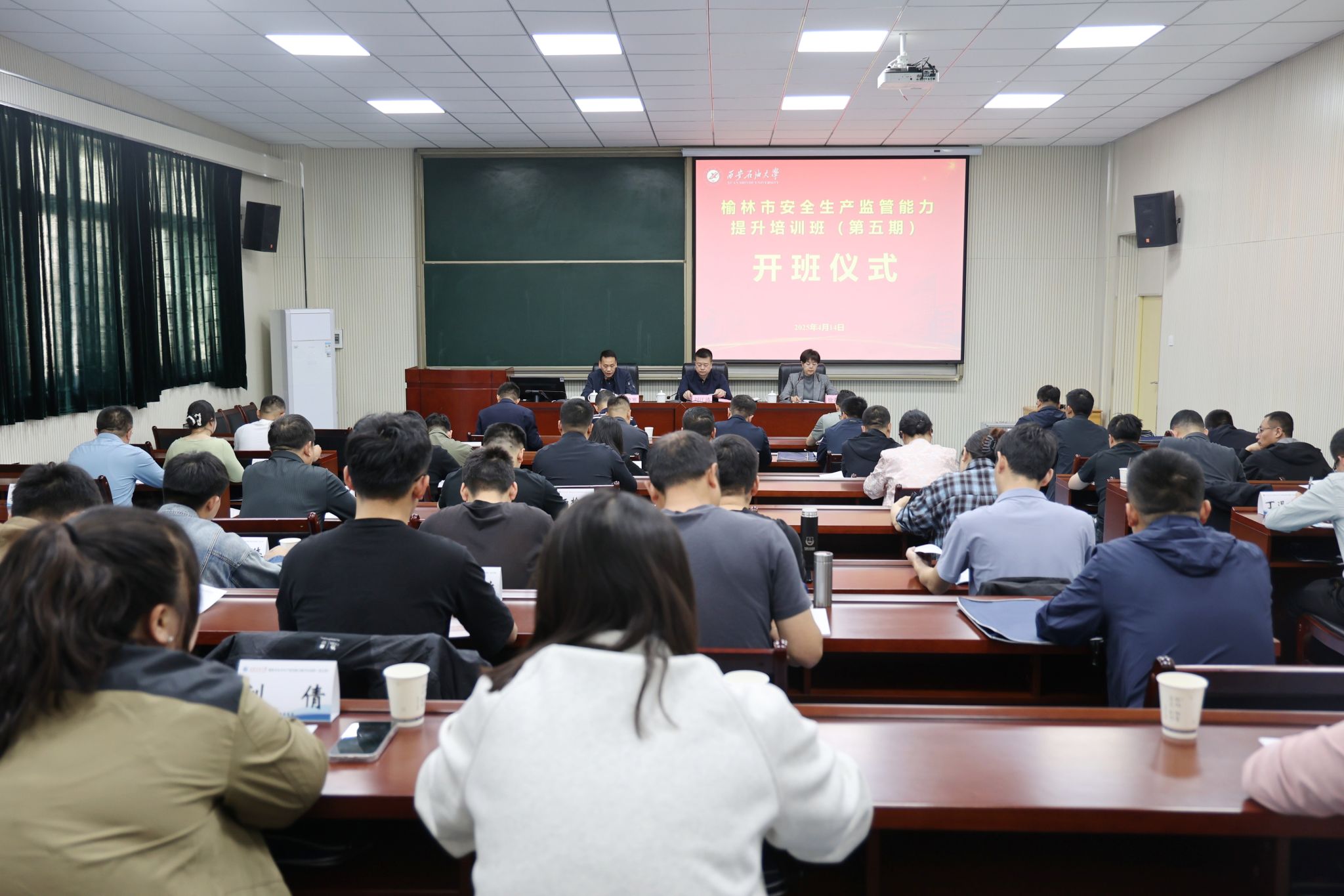 4月14日上午,榆林市安全生产监管能力提升培训班(第五期)在公司明德校区顺利开班。榆林市应急管理局党委委员、副局长刘江涛,总支书记张凌寒出席开班仪式。仪式由榆林市应急管理局四级调研员徐春梅主持。来自榆林市各单位的61名安全生产监管骨干参加培训。