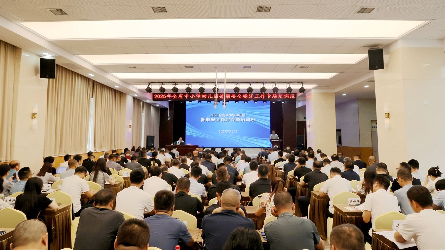 7月10日,2025年全省中小学幼儿园暑期安全稳定工作专题培训班在公司明德校区顺利开班。陕西省委教育工委稳定安全办公室主任任正旺出席开班式,来自陕西省各地市、县(市、区)教育行政部门负责公司安全的科(处、股)长160余人参加培训。